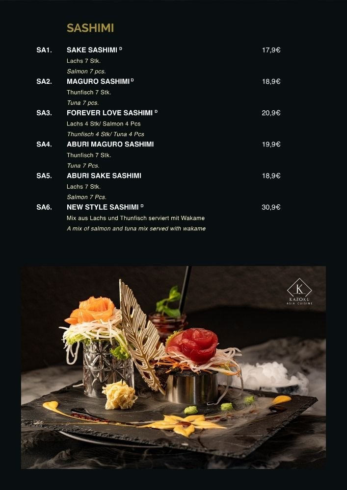 Um Ihnen den besten Service zu bieten, teilen Sie Kazoku bitte Ihre gewünschte Essenszeit im Restaurant mit. Ein Anruf ist am besten.